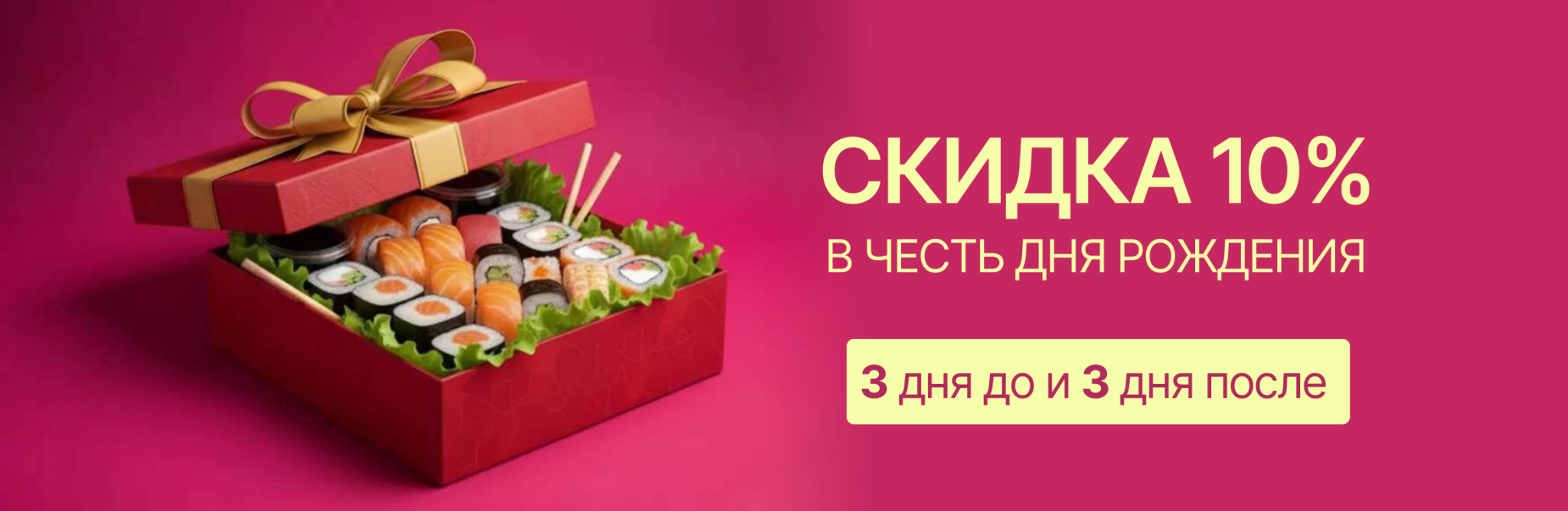 6 роллов: Филадельфия, Океан с лососем терияки, Снэк с копченым цыпленком, ролл с огурцом,...